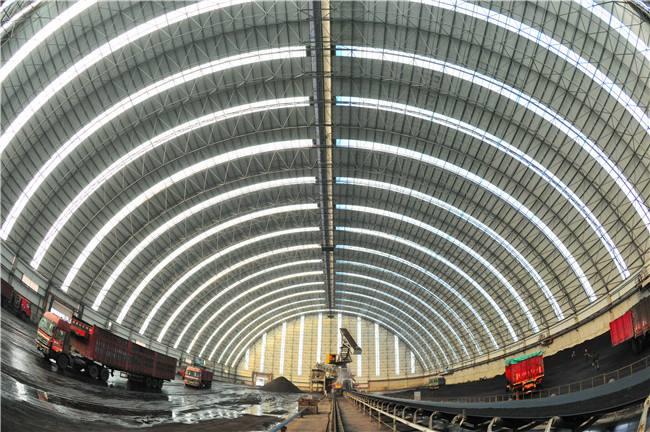 堆场料场封闭式主体结构为新型的钢通辽网架结构,维修结构为通辽钢结构通辽不锈钢板和纤维增强塑料灯具,其外形以通辽网架式和平板为主,连接柱通辽施工自由,设置喷雾自动喷水系统,从而可以实现棚内所有物料的覆盖,减少物料在运输过程中的损耗,起到防尘的作用,减少工厂关闭后的二氧化硫排放量,50mg/m3颗粒排放量小于10mg/m3,非常适合低能耗。低闭库自动感应反应对库存轮胎进行清洁,确保轮胎不受道路污染;封闭的储存区可从源头控制粉尘污染,控制无序排放。